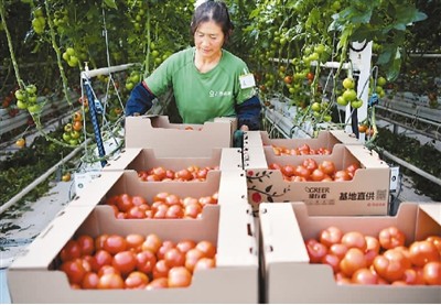 江西省南昌市進賢縣羅溪鎮(zhèn)一家智慧農業(yè)園的大棚內,村民正在打包西紅柿以備線上銷售。 |