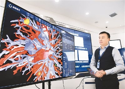 工作人員在安徽省合肥市的中國聲谷體驗(yàn)中心介紹一款智慧醫(yī)療產(chǎn)品。