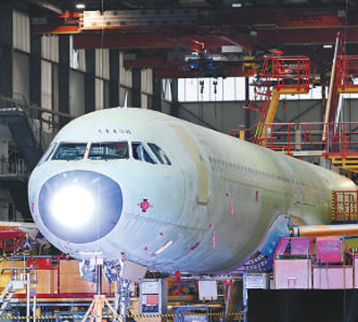 空客天津總裝線(xiàn)上的A321飛機(jī)。