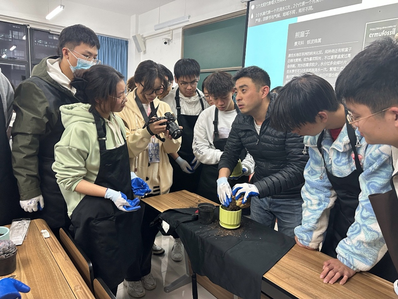 植物栽培課程上園藝?yán)蠋熃淌谕瑢W(xué)們種植多肉植物。毛云煥攝