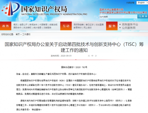近日,國(guó)家知識(shí)產(chǎn)權(quán)局發(fā)布了《國(guó)家知識(shí)產(chǎn)權(quán)局辦公室關(guān)于啟動(dòng)第四批技術(shù)與創(chuàng)新支持中心(TISC)籌建工作的通知》,在地方推薦基礎(chǔ)上,結(jié)合 TISC 專(zhuān)家委員會(huì)遴選意見(jiàn),國(guó)家知識(shí)產(chǎn)權(quán)局與世界知識(shí)產(chǎn)權(quán)組織共同確定了此次技術(shù)與創(chuàng)新支持中心籌建機(jī)構(gòu)名單。