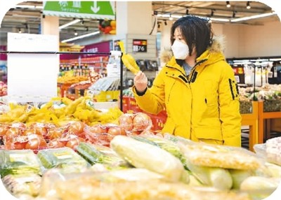 2月10日,消費(fèi)者在山東省臨沂市平邑縣一家超市選購蔬菜。 |