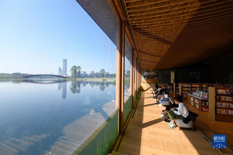 讀者在成都興隆湖畔的中信書店內(nèi)讀書(2022年4月20日攝)。新華社記者 胥冰潔 攝
