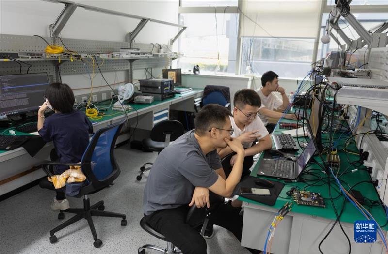 在成都中科微信息技術研究院有限公司,通信及芯片團隊在討論研究工作(2022年9月21日攝)。新華社記者 江宏景 攝