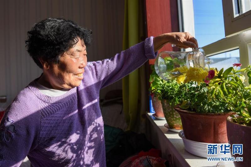 吉木薩爾縣頭工街東村村民在家中澆花(1月21日攝)。新華社記者 丁磊 攝