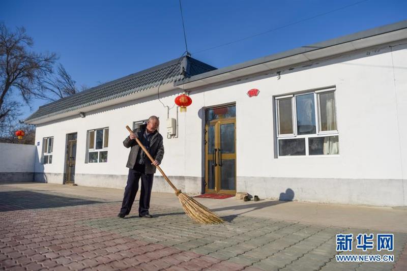 吉木薩爾縣頭工街東村村民楊萬里在打掃房間(1月21日攝)。新華社記者 丁磊 攝