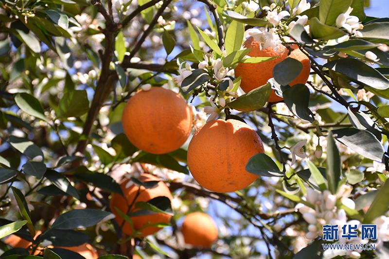 新華網(wǎng)重慶4月23日電(劉文靜)正是臍橙花開(kāi)的時(shí)節(jié),在位于三峽庫(kù)區(qū)腹心的重慶奉節(jié)縣,臍橙樹漫山遍野,香氣撲鼻。樹下,金黃的晚熟臍橙掛滿枝頭,潔白的臍橙花點(diǎn)綴其間,花果同樹,分外惹眼。