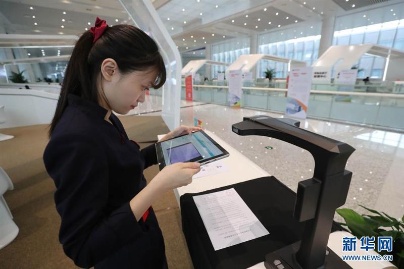 中國(guó)(遼寧)自由貿(mào)易試驗(yàn)區(qū)沈陽(yáng)片區(qū)“渾南會(huì)客廳”內(nèi),工作人員在幫助企業(yè)上傳文件(2020年9月8日攝)。新華社記者 楊青攝