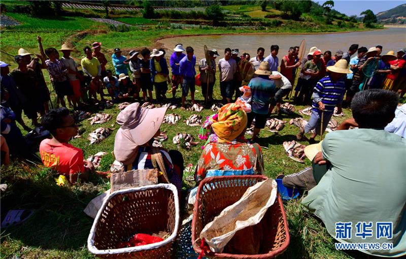 近日,云南省彌勒市巡檢司鎮(zhèn)高甸村委會麥塘彝族村舉行一年一度的村民捕魚活動,男女老少齊上陣奮力拉網(wǎng),魚兒歡騰跳躍,村民們的喜悅之情溢于言表。村民們自發(fā)出錢購買魚苗養(yǎng)殖生態(tài)魚,捕獲的魚按戶平均分配,在有效保護(hù)壩塘水源的同時,促進(jìn)村民增收。新華網(wǎng)發(fā)(普佳勇攝影報道)