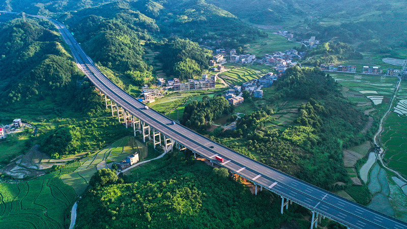 人民網(wǎng)長沙6月8日電 6月7日,湖南省常寧市廟前鎮(zhèn)泉塘村,綠意盎然,生態(tài)優(yōu)美,穿境而過的許廣高速與農(nóng)房民居、綠色田園交相輝映,呈現(xiàn)出一副美麗的夏日鄉(xiāng)村畫卷。