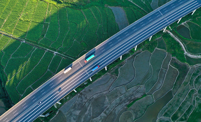 穿境而過的許廣高速與農(nóng)房民居、綠色田園交相輝映。周秀魚春攝