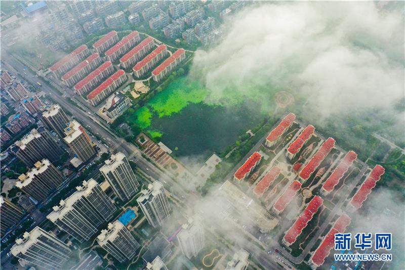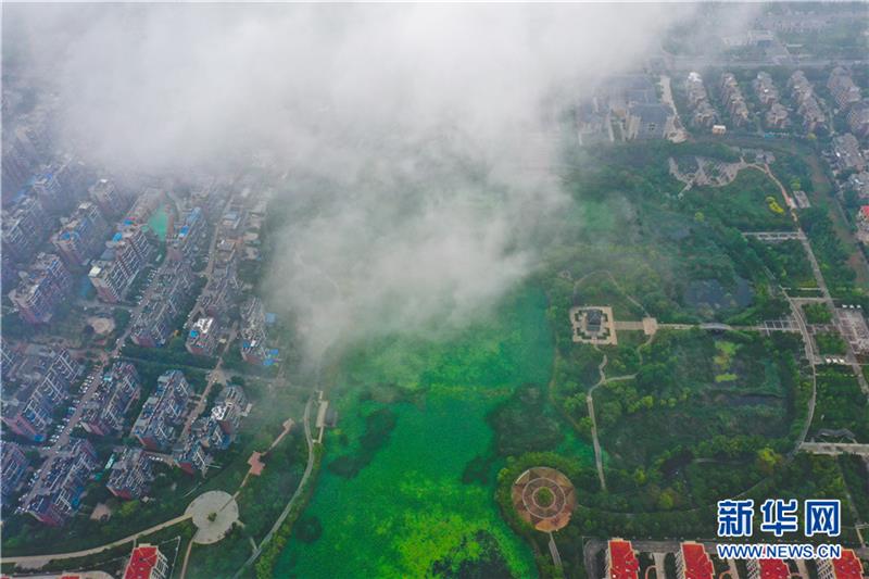 6月27日,航拍安徽省淮北市采煤沉陷區(qū)治理后的濕地公園。
