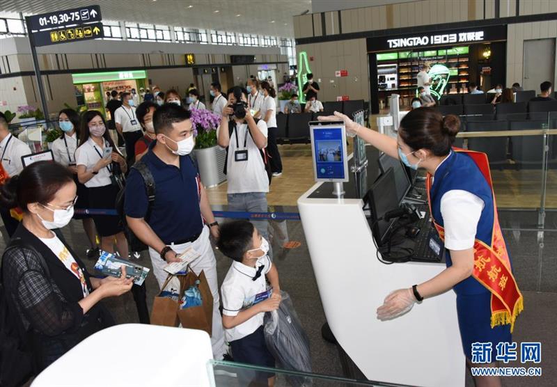 8月12日,首航旅客在辦理登機(jī)。新華社記者 李紫恒 攝