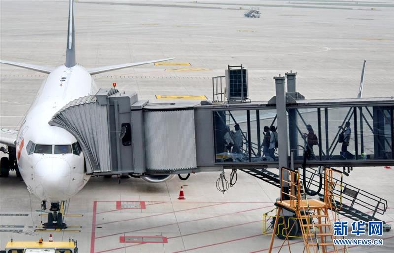 8月12日,旅客通過廊橋登上執(zhí)行首航的飛機(jī)。新華社記者 李紫恒 攝
