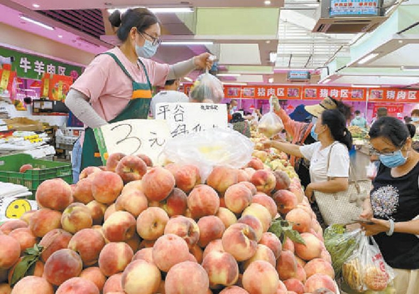 上周末,東城區(qū)幸福大街附近的一家果蔬超市里,經(jīng)營(yíng)者和購(gòu)買者全程佩戴口罩,保持安全距離進(jìn)行交易。本報(bào)記者 劉平攝