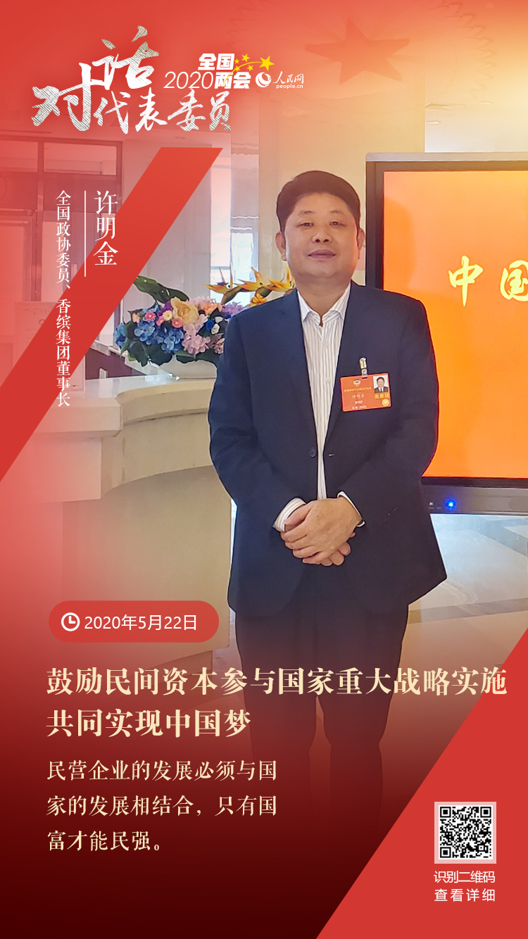 全國政協(xié)十三屆三次會(huì)議正在北京舉行,全國政協(xié)委員、香繽集團(tuán)董事長許明金向大會(huì)提交了關(guān)于“引導(dǎo)民間資本參與國家重大戰(zhàn)略實(shí)施”的提案。