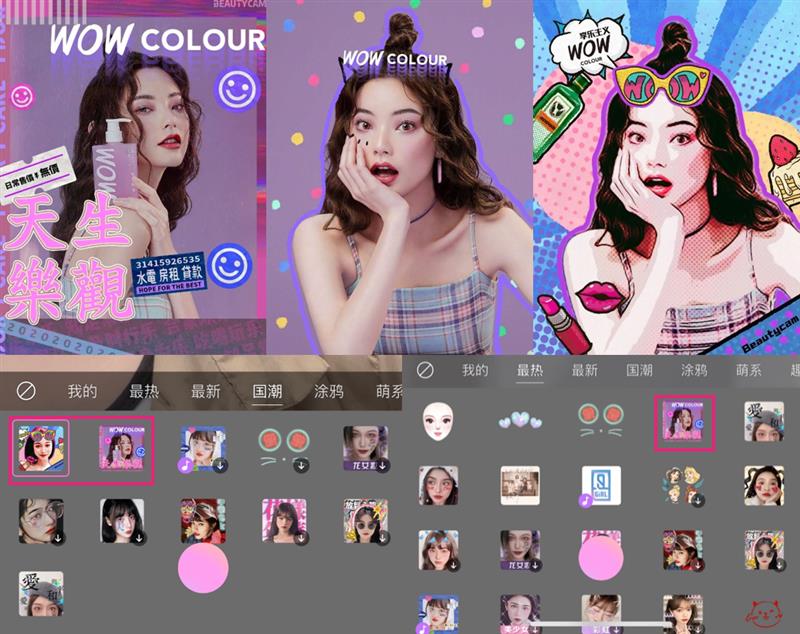 今年5月,美顏相機「顏值兌換公司」推出國潮專場——【國潮自拍合伙人】,并攜手Angelababy、宋茜等12位明星潮咖,及國潮美妝集合店WOW COLOUR輪流擔任每日潮店長,助力年輕用戶曬出國潮自拍態(tài)度。依托強大的平臺背景、明星效應及高度的人群匹配度,WOW COLOUR成為此次活動的最大營銷贏家。