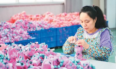 近年來,陜西省安康市漢濱區(qū)緊抓蘇陜扶貧協(xié)作機遇,積極利用協(xié)作項目推動當?shù)亟?jīng)濟和社會事業(yè)發(fā)展。圖為工人在漢濱區(qū)五里工業(yè)集中區(qū)一家毛絨玩具公司的車間內(nèi)工作,該工業(yè)集中區(qū)由蘇陜協(xié)作資金幫助建設。新華社記者 邵 瑞攝