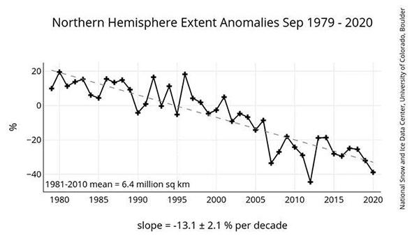 (北極海冰監(jiān)測(cè),2020年9月北極海冰范圍異常偏小,北極海冰達(dá)歷史第二少)