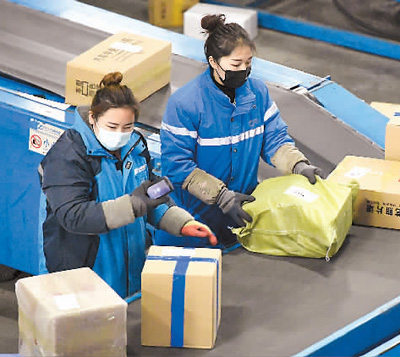 1月21日,快遞分揀員在中通快遞河南公司鄭州分撥中心分揀快遞。 |