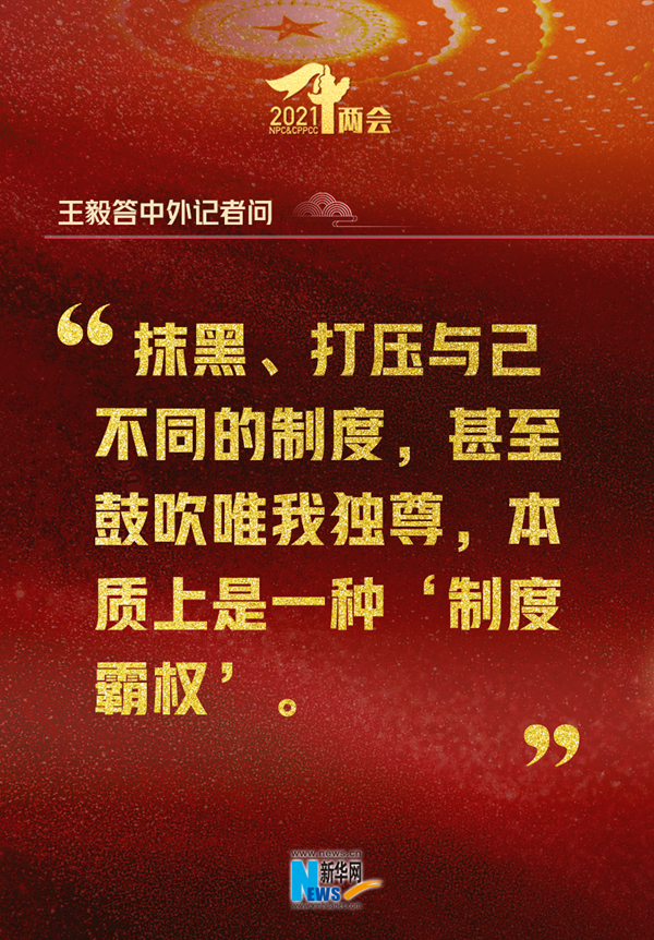 原聲回放:制度的選擇需要量體裁衣,不能削足適履。一個(gè)國家的路走得對(duì)不對(duì),關(guān)鍵在于是否符合本國國情。抹黑、打壓與己不同的制度,甚至鼓吹唯我獨(dú)尊,本質(zhì)上是一種“制度霸權(quán)”。