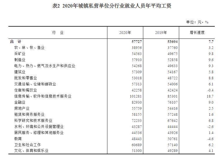 2020年城鎮(zhèn)私營單位分行業(yè)就業(yè)人員年平均工資。