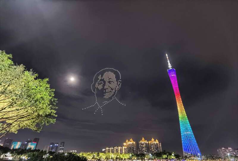 這幾天,全國各地以各自的方式緬懷、送別這位時代的科學(xué)巨匠。今晚,廣州“穿越千機(jī)”無人機(jī)飛行表演團(tuán)隊(duì),借助科技的方式開展了一場光影緬懷活動,寄托全社會對袁老的哀思。
