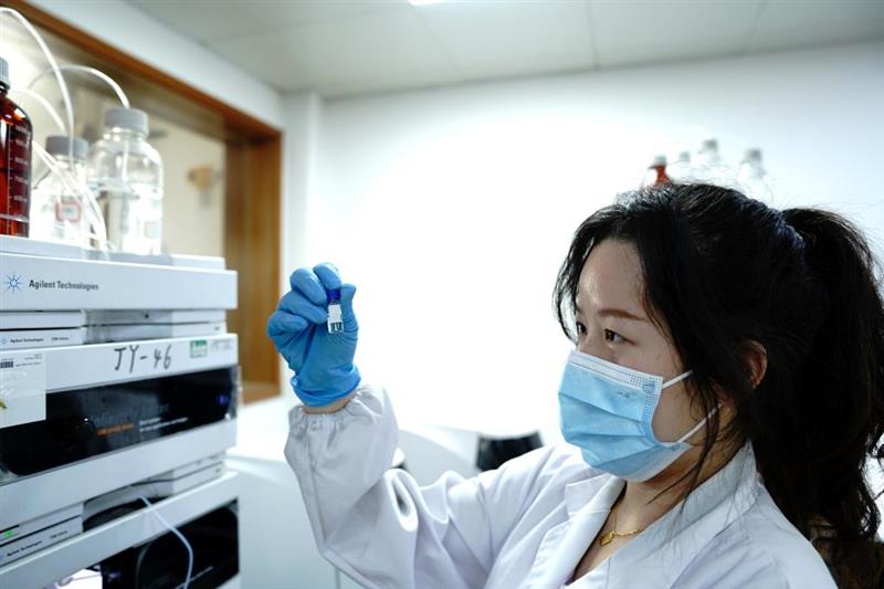 5月1日,在上海虹橋中藥飲片有限公司質(zhì)量檢測(cè)中心,檢測(cè)人員對(duì)產(chǎn)品進(jìn)行檢測(cè)。新華社記者 張建松 攝