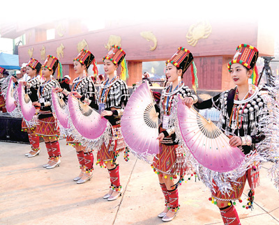 云南德宏傣族景頗族自治州隴川縣,當?shù)厝罕娖鹞钁c祝節(jié)日。