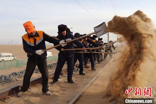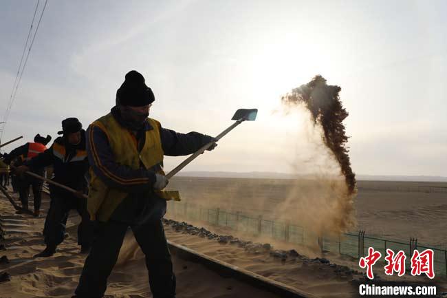敦煌鐵路線上的“清沙人”:零下21℃徒步沙漠除萬鍬沙