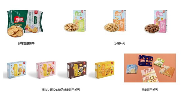 健康系列特別推出了燕麥餅干系列,在產(chǎn)品上深化突出品類概念,比如添加了30%以上的燕麥和超過22%的進口乳粉,這些都通過好麥形象IP小小麥的口吻在包裝上突出,做到健康又好玩,幫助消費者的快速選擇。