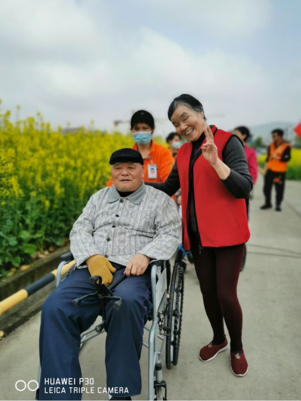在活動現(xiàn)場,筆者看到坐著輪椅的老人們一邊欣賞著美麗的春光,一邊還迫不及待地讓志愿者給自己拍照留念。定格的微笑,就像那春天的西子美景,倍感春天的幸福動人。令人感動的是,一同出游的健康活力老人、社區(qū)居家(原居)健康老人也主動發(fā)揮志愿服務(wù)精神,“低齡”、健康老人服務(wù)“高齡”、失能失智老人,形成良好的“養(yǎng)老互助”氛圍。