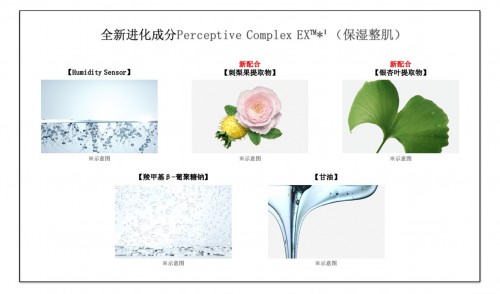 Perceptive Complex EX?*1是指適應(yīng)各種肌膚類型、狀態(tài)、環(huán)境,打造健康肌膚而獨自研發(fā)的成分。 Perceptive Complex EX?御銀座感知復(fù)合臻粹?在原有Perceptive Complex?*2的基礎(chǔ)上實現(xiàn)了全面升級。