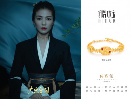 古典美學(xué)的魅力來自其歷史的厚重感,傳家金系列中的多寶金珠手串、大宋宮詞龍鳳對(duì)佩、祥荷戒、云水龍鳳對(duì)戒、圓智龍鳳鏈等產(chǎn)品均取自我國(guó)古典美學(xué)的精髓。而在劇中劉濤也將自己完美地契合到角色之中,一眸一笑都能讓你穿越到千年以前的北宋時(shí)期。點(diǎn)綴在其中的古法金飾宛如歷史與現(xiàn)實(shí)的交匯點(diǎn),將我們與過去的歷史相連,展現(xiàn)了東方美學(xué)的瑰麗與浪漫,使得東方傳統(tǒng)文化在現(xiàn)實(shí)中延續(xù),開拓出新的現(xiàn)代古典美學(xué)潮流。