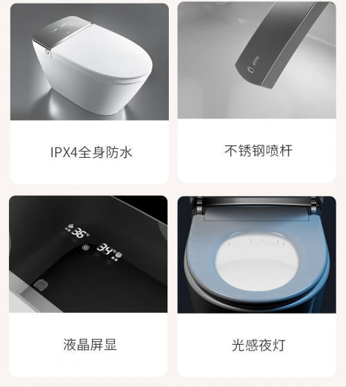 當(dāng)然!購選時(shí),附加的選擇上如果帶智能液晶屏、一鍵智能操控、光感夜燈、不銹鋼噴頭、采用即熱沖洗集成模塊,更有腳感沖水的智能馬桶,這樣的也千萬不可錯(cuò)過。