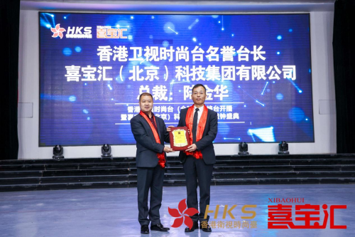 活動(dòng)現(xiàn)場(chǎng),HKEE(港股交)駐京辦事處首席代表陳守華為香港衛(wèi)視時(shí)尚臺(tái)臺(tái)長(zhǎng)、喜寶匯(北京)科技集團(tuán)總裁陸金華頒發(fā)港股交掛牌代碼銅牌,并對(duì)喜寶匯集團(tuán)敲鐘盛典表示熱烈祝賀!
