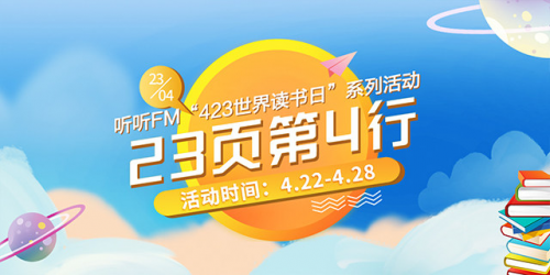 4月23日是世界讀書(shū)日。4月22日至28日,北京廣播電視臺(tái)官方客戶端聽(tīng)聽(tīng)FM舉辦為期七天的第二屆“423聽(tīng)書(shū)節(jié)”活動(dòng)。拿起手邊的一本書(shū),翻到第23頁(yè)第四行,將文字內(nèi)容分享出來(lái),即可參與簽到抽獎(jiǎng),贏取現(xiàn)金紅包、聽(tīng)聽(tīng)FM會(huì)員卡、網(wǎng)紅暢銷(xiāo)書(shū)等驚喜福利。