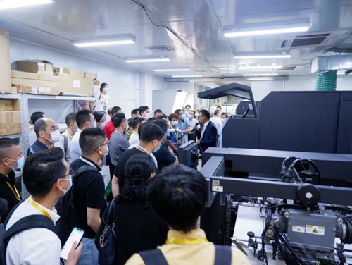 研討會結束后,300余位嘉賓來到了番茄云印刷科技(東莞)有限公司參觀Jet Press 750S的現(xiàn)場演示。