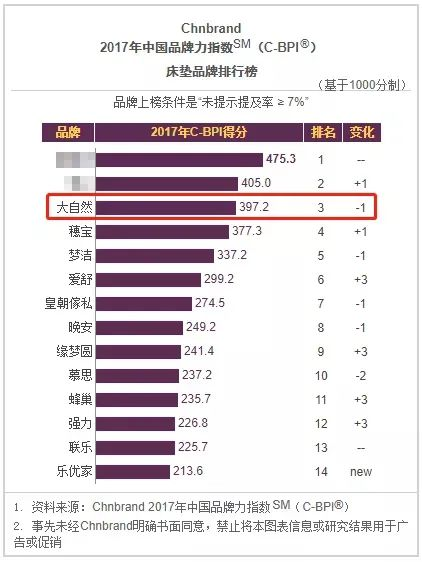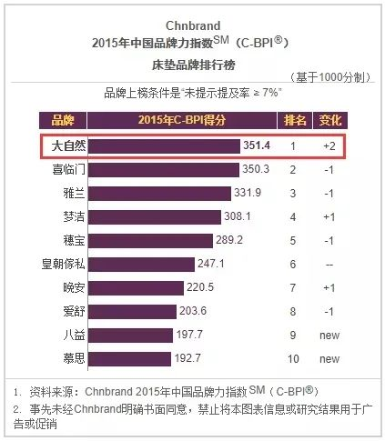 能夠連續(xù)8年蟬聯(lián)中國品牌力指數(shù)(C-BPI)床墊品牌榜前三,是消費者對大自然床墊的肯定和鼓勵,更是大自然前進的動力與責任。