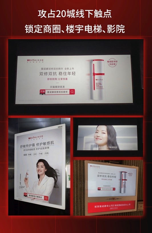 線下,則通過在全國范圍內(nèi)20座城市進行智能屏媒體投放,以及在三大機場和10個城市的600+影院進行媒體投放,以最快的速度在消費者群體中建立薇諾娜品牌形象。薇諾娜此番通過線上線下聯(lián)動,全域發(fā)聲,環(huán)環(huán)相扣,實現(xiàn)了聲量轉(zhuǎn)化銷量,銷量再破紀錄,成為功效性護膚品營銷的標桿。