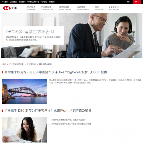 匯豐與DBC職夢(mèng)同樣關(guān)注留學(xué)生職業(yè)發(fā)展規(guī)劃,為培養(yǎng)更多具有國(guó)際競(jìng)爭(zhēng)力的優(yōu)秀金融人才,DBC職夢(mèng)作為留學(xué)生求職咨詢(xún)領(lǐng)軍品牌,與匯豐銀行(中國(guó))達(dá)成合作,免費(fèi)為匯豐客戶提供求職評(píng)估,另匯豐客戶可享DBC職夢(mèng)專(zhuān)屬折扣價(jià)求職技能課程,更進(jìn)一步提供留學(xué)生綜合求職實(shí)力。