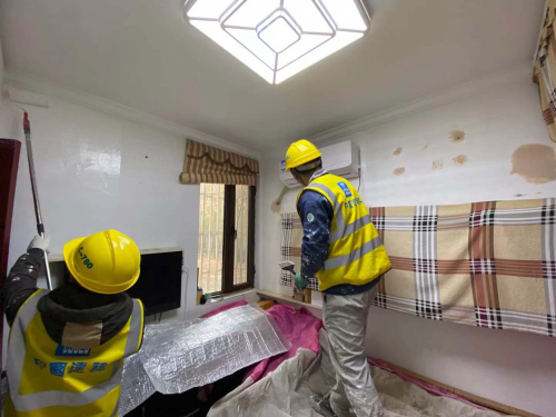 小區(qū)居民90歲高齡的老人徐富義,家里墻面涂料發(fā)霉嚴(yán)重,項目安排工人義務(wù)整修。