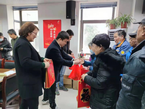 聯(lián)合社區(qū)居委深入群眾之中,向小區(qū)居民拜年,贈送春聯(lián)、米糕等春節(jié)禮品。