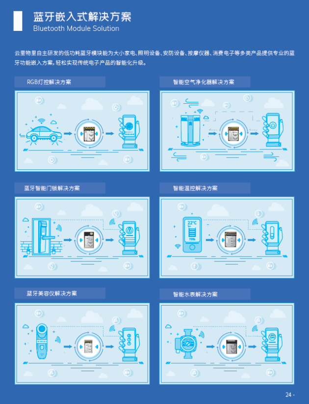 基于云里物里低功耗藍(lán)牙模塊的藍(lán)牙嵌入式解決方案可以廣泛應(yīng)用于大小家電、照明設(shè)備、安訪設(shè)備、消費(fèi)電子等多類產(chǎn)品中,輕松實(shí)現(xiàn)傳統(tǒng)電子產(chǎn)品的智能化升級(jí)。