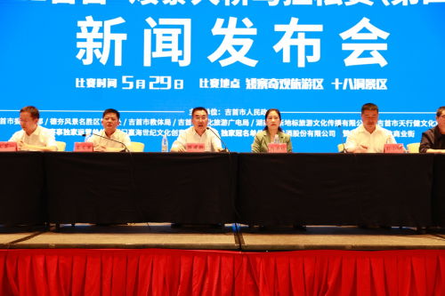 5月13日上午,2021酒鬼酒·吉首矮寨大橋馬拉松賽新聞發(fā)布會在湘西州皇冠假日酒店三樓宴會廳召開。市委常委、市委宣傳部部長向洪瓊、酒鬼酒股份有限公司黨委副書記、紀委書記、副總經(jīng)理滕建新、市人民政府副市長彭小明、德夯風景名勝區(qū)管理處主任王文軍、花垣縣委宣傳部副部長麻靜榮、市教體局副局長文茗一、市天行健文化旅游投資開發(fā)有限責任公司董事長谷明、廈門贏海世紀文化創(chuàng)意有限公司總經(jīng)理袁石以及賽事組委會各職能單位代表共同出席了新聞發(fā)布會。