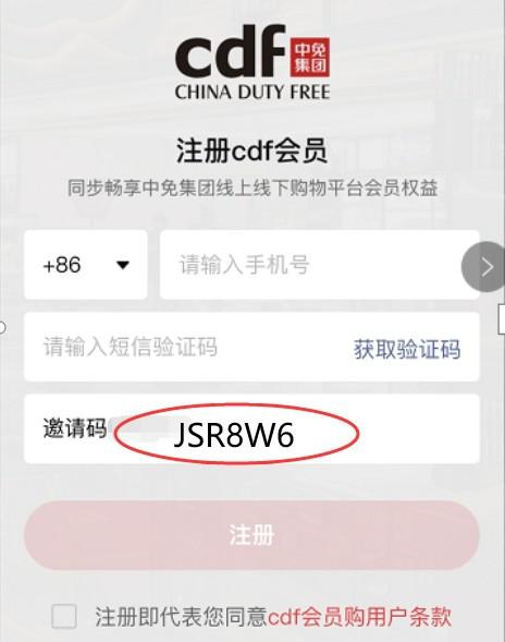 6.那如何才能上免稅店線上呢?搜索小程序【cdf會員購】,通過邀請碼成為專屬會員就能買買買;JSR8W6(注冊時填寫)