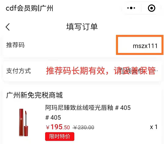 cdf會員購廣州(屬于廣州白云機場,經(jīng)常有各種國際大牌5折促銷不容錯過,并且支持線下白云機場免稅店自提,下單時輸入推薦碼:mszx111即可)