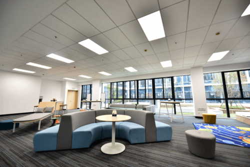 無(wú)論是教室一旁的公共區(qū),還是走廊、屋頂、中庭,抑或是轉(zhuǎn)角處,學(xué)生們都可以停留下來,或小憩,或三五成群地社交,或小組討論與學(xué)習(xí)。