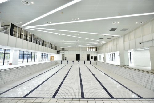 25米6賽道、按照FINA國(guó)際泳聯(lián)標(biāo)準(zhǔn)設(shè)計(jì)的恒溫游泳池和專業(yè)跳臺(tái),已初具雛形。泳池裝修采用高安全性能及極具美學(xué)設(shè)計(jì)的大理石磚面,同時(shí)還配備專業(yè)的臭氧發(fā)生器。