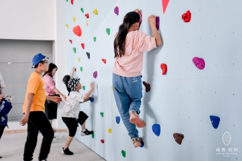 其中一個(gè)場(chǎng)館還配備了攀巖墻,杭州威雅請(qǐng)來了專業(yè)顧問設(shè)計(jì)攀巖墻,即便微小到每一個(gè)巖點(diǎn),所采用的材料和技術(shù)模型都是科學(xué)的。